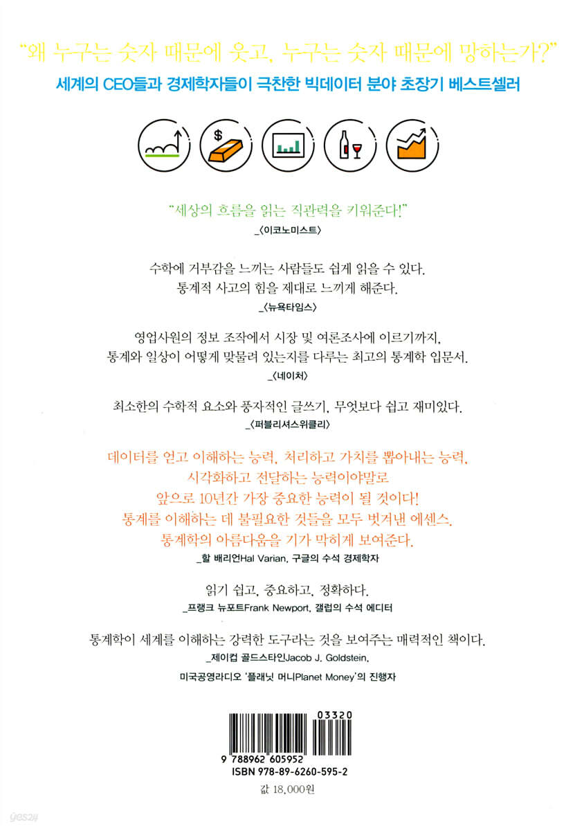 통계를 몰라도 살아가는데 지장은 없다. 그렇지만 이 책에서 얘기하는 수준의 통계를 안다면, 보다 더 지혜롭게 세상을 이해할 수 있을 것이고, 더욱 정확하게 의사결정을 내릴 수 있을 것이다.