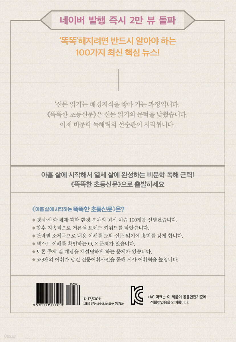 | 품명 및 모델명 | 아홉 살에 시작하는 똑똑한 초등신문 |