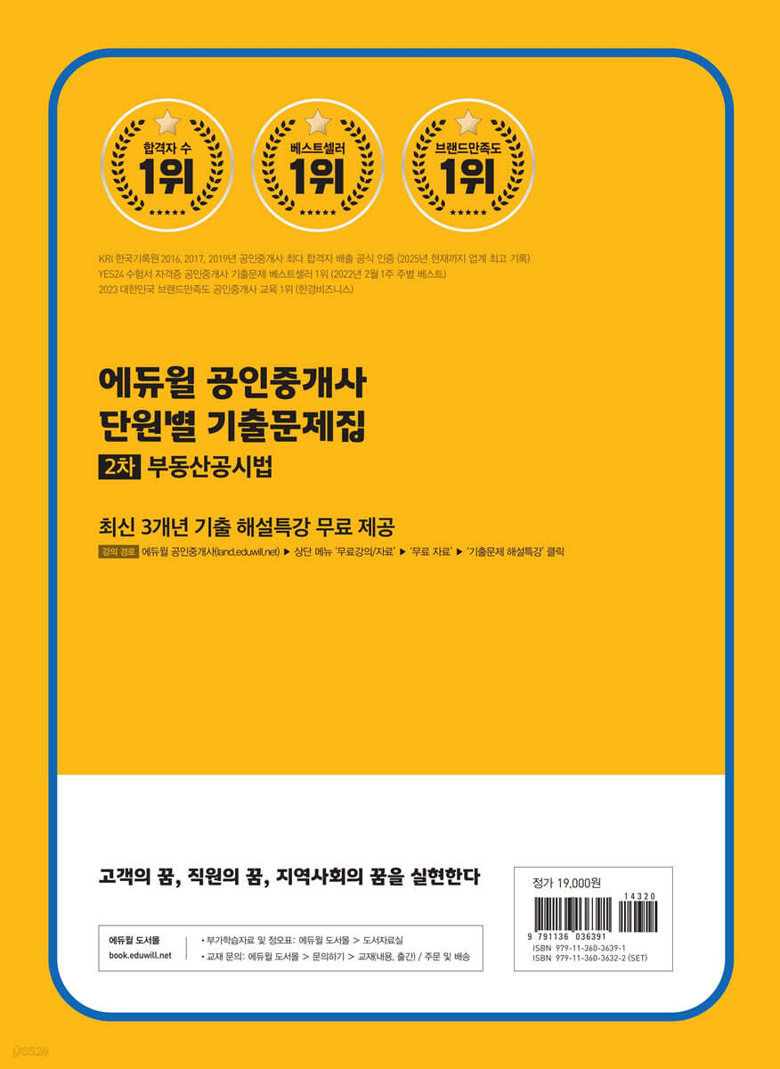 2025 에듀윌 공인중개사 2차 단원별 기출문제집 세트(공인중개사법령 및 중개실무, 부동산공법, 부동산공시법, 부동산세법)