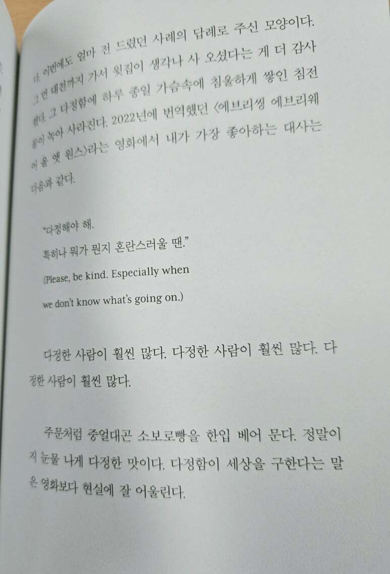 “ 다정해야 해, 특히나 뭐가 뭔지 혼란스러울 땐.” 이라는 대사를 좋아하신다고 하는데