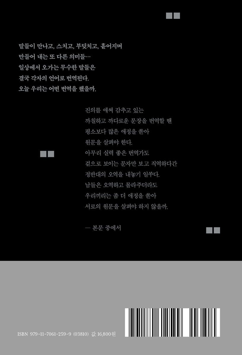 책 띠지에는 ‘같은 언어 안에서도 번역이 필요한 순간이 있다’ 라고