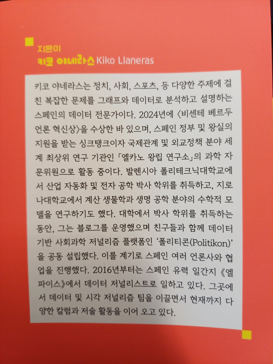 그는 확률·통계 개념을 나열하는 것이 아니라, 실제 기사와 리포트에서 어떻게 데이터를 읽고 시각화하고 설명할 것인지까지 이어지는 데이터 저널리즘 실무자의 시선이 녹아 있다.