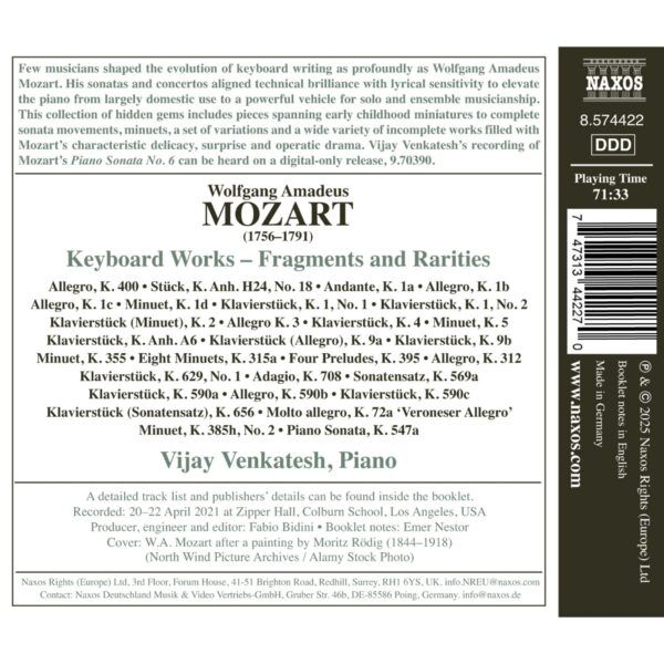 Vijay Venkatesh 모차르트: 건반 작품 - 단편 및 희귀곡 (Mozart: Keyboard Works - Fragments And Rarities)