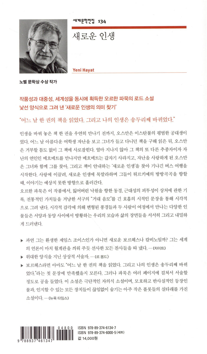 책에 대한 의미는 어떨까. 오스만은 책 한 권으로 기괴한 경험들을 한다. 그야말로 영화 같은 일들을 겪는다. 한 권이 책이 지닌 영향력은 이 책에서 어마어마하다. 실제로도 마르크스의 책이 당대의 젊은이들을 끓게 만들었던 적도 있고, 괴테의 <젊은 베르테르의 슬픔>도 자살을 낳는 문제가 있었으며, 사회 전반에까지 이어진 예술운동이었던 다다이즘 또한 다다 쉬르레알리슴 선언을 중심으로 확산됐었다. 하지만 오늘날 이 책들을 읽는다고 해도 우리에게 당대만큼 큰 반향을 불러일으키진 못할 것이며, 이 책들 또한 당시에 모든 사람들에게 영향을 주었던 것은 아니다. <새로운 인생>의 서두에 인용된 노발리스의 시('같은 이야기를 들었음에도 다른 이들은 그와 같은 경험을 하지 못했다.')는 이 소설에서 책이 미치는 영향과 아주 닮아 있다. 책 속에서 자난이 '책에는 죄가 없으며, 책을 읽는 사람이 책 속에서 무엇을 보느냐에 달려 있다'라고 하는 말도 비슷한 맥락으로 읽힌다. 오스만 역시 자신의 인생을 뒤바꾼 책을 후일에 다시 읽을 때 같은 느낌을 받지는 못한다. 그만큼 책은 분명 지대한 힘을 지녔지만, 그보다 더 결정적인 힘은 독자에게 있을 것이다. 오르한 파묵의 이 책을 제대로 이해하지 못하고 있을지언정, 안심이 되는 것은 이러한 이유에서일 것이다. 나는 나대로 읽으면, 그 안에서 내게 필요한 의미를 구하면, 그것으로 족하니까.