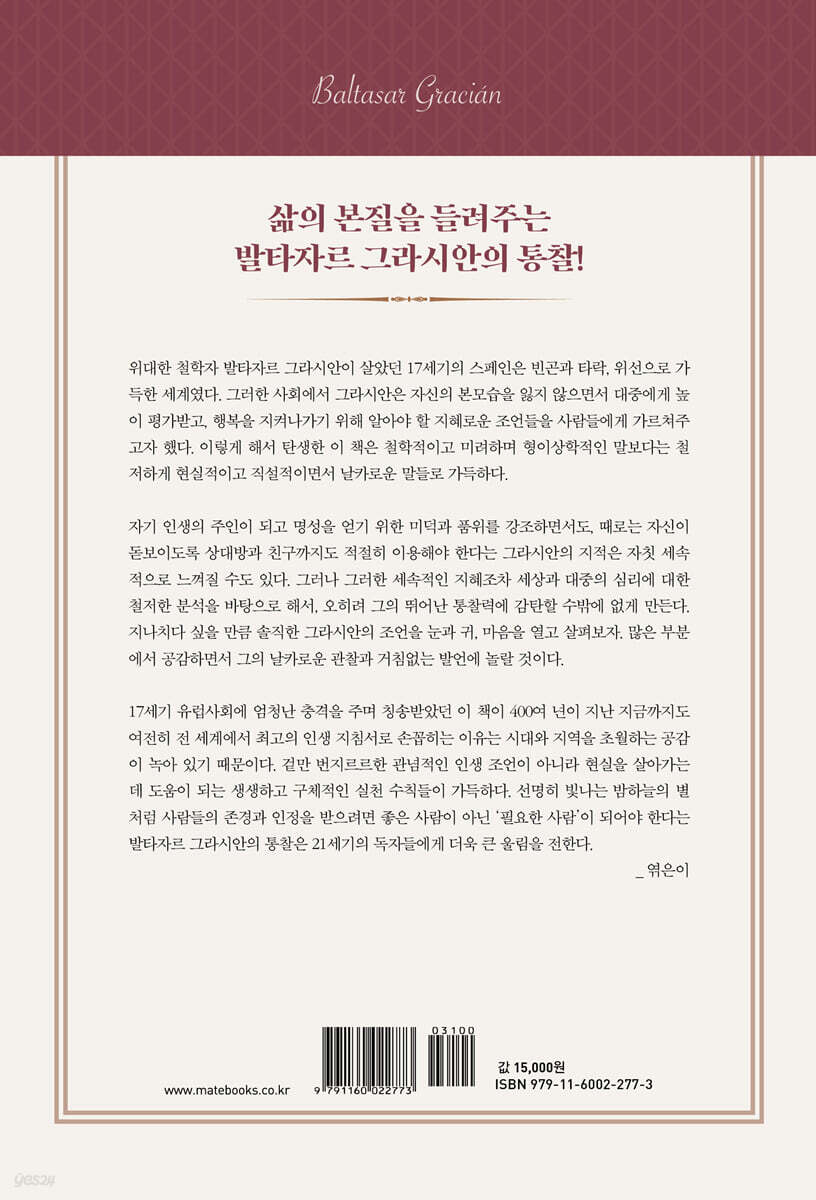 그라시안 이 모랄레스 발타사르 ,아르투어 쇼펜하우어 저/강현규,정영훈 편/김세나,이상희 역 | 메이트북스 | 2023년 11월 24일